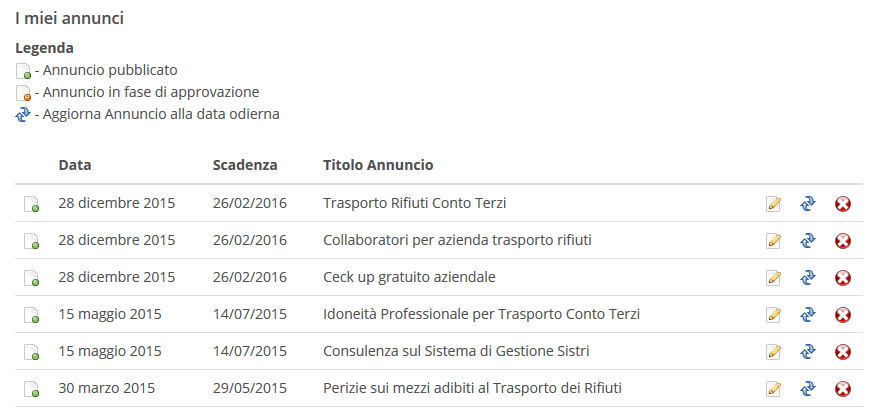 o lasciarlo scadere (gli annunci scaduti vengono rimossi dal sistema e non saranno quindi più visibili sulle nostre pagine).
